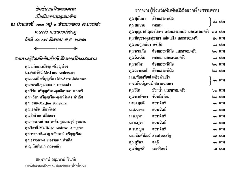 ทางสำนักพิมพ์บริการแจกหนังสือธรรมทานให้กับท่าน